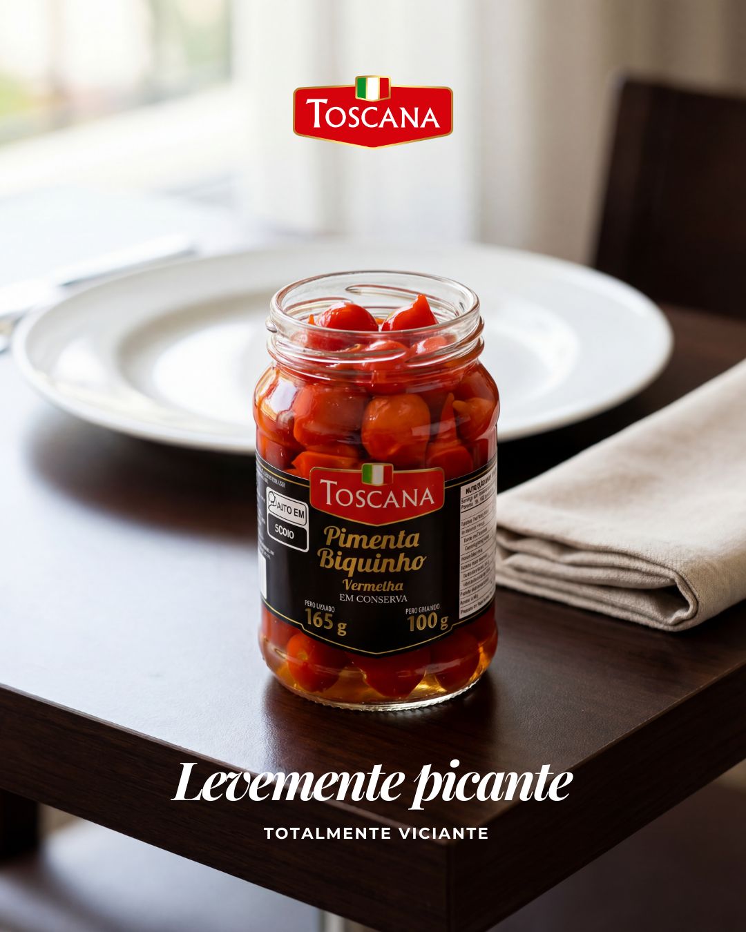 A Pimenta Biquinho Toscana é exatamente assim: delicada, aromática e com um leve toque de picância que desperta o paladar sem roubar a cena, perfeita para quem aprecia sofisticação nos detalhes.